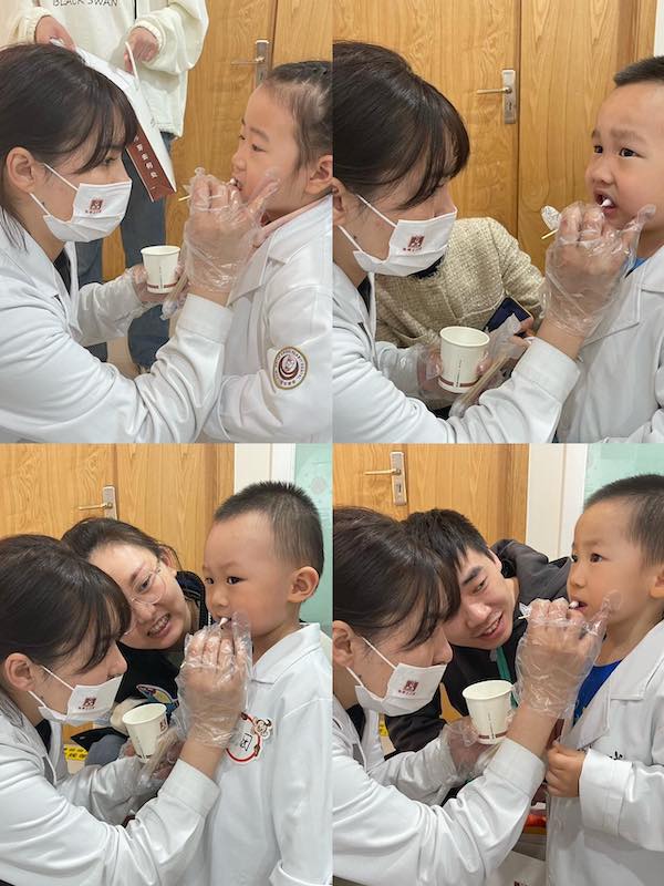 那么小小醫生考取了資格證,就要給其他小朋友檢查牙齒了。