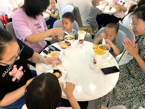 小朋友們根據(jù)自己的喜好放入了各種喜歡的小料