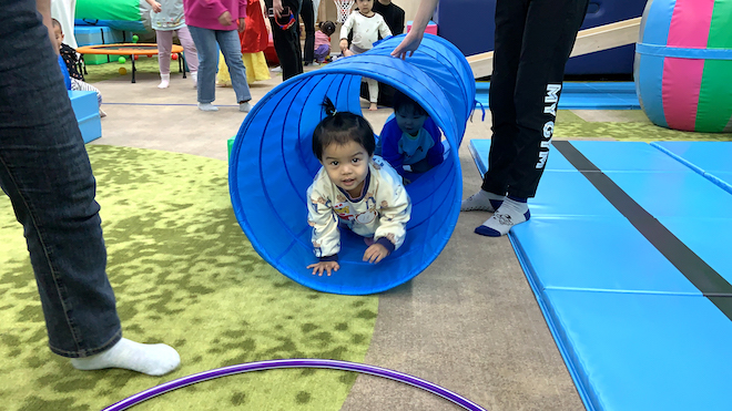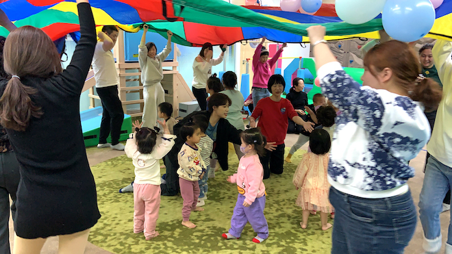 爸爸媽媽跟寶寶一起運球 千萬不要掉了哦·· 看看哪組家庭最有默契~~
