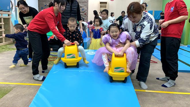 小朋友們快跟著老師一起舞動起來,讓我們圍成一個大大的圓圈,跳起來···嗨起來···開心起來··