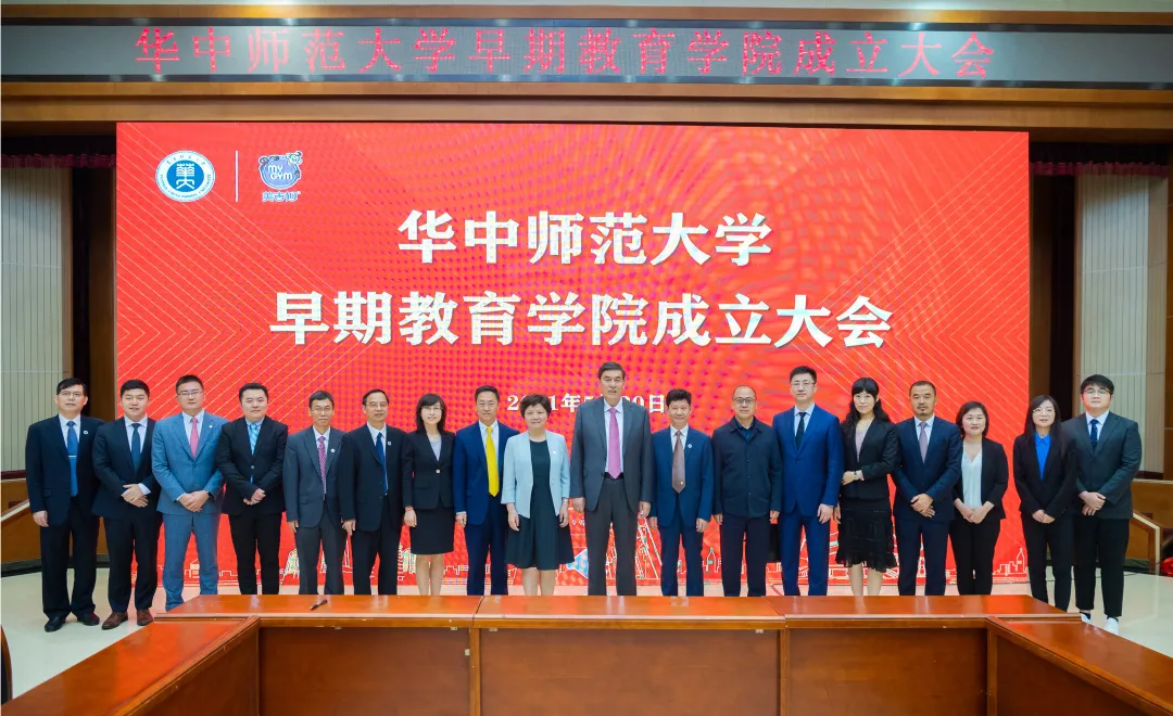 2021年5月20日,美吉姆與華中師范大學合作成立的早期教育學院舉行成立大會暨揭牌儀式,雙方共同設立的“早期教育實驗教學中心”也正式揭牌。華中師范大學聘請美吉姆(中國)董事長劉俊君、特邀顧問彭麗敏為兼職教授,同時授予美吉姆“華中師范大學早期教育學院實習基地”標牌,并聘請9名美吉姆教師為本科生校外實踐指導教師。